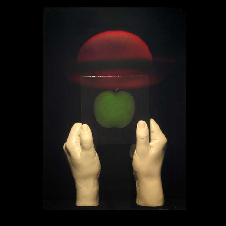Anthropos (2017) DCG hologram mounted inside metal army ration kit Produced with August Muth: The Light Foundry, Santa Fe, N.M. Installation: Aveiro City Museum, Portugal 2018 |